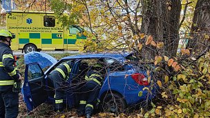 V Dětenicích havaroval osobní automobil. Operační středisko na místo vyslalo profesionální jednotku hasičů z Jičína spolu s dobrovolnou jednotkou obce Libáň.
