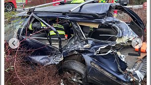V Kuklenské ulici v Hradci Králové došlo ke střetnutí vlaku s osobním automobilem. Zasahuje jednotka profesionálních hasičů z místní centrální stanice. Řidiče auta hasiči z poškozeného vozu vyprostili, je v péči záchranářů. Asi třicítku cestujících hasiči převezli evakuačním autobusem na nádraží.
