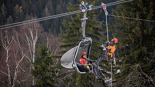 Profesionální hasiče HZS Královéhradeckého kraje prověřil na lanovce v Skicentrum Deštné v Orlických horách náročný výcvik