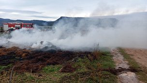 Čtyři jednotky hasičů zasahovaly u požáru stohu sena v obci Martínkovice. Jednalo se o tři řady balíků, které hasiči postupně rozebírali a hasili plamenné hoření. Předběžně odhadnutá škoda byla vyčíslena na 800 tisíc korun, příčina vzniku je předmětem vyšetřování.