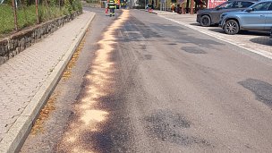 V obci Bernartice na Trutnovsku hasiči na komunikaci zlikvidovali skvrnu od motorové nafty měřící cca 200 metrů. Po ošetření silnice sorbentem a úklidu se jednotky (HZS Trutnov, JSDH Žacléř) vrátily zpět na své základny.